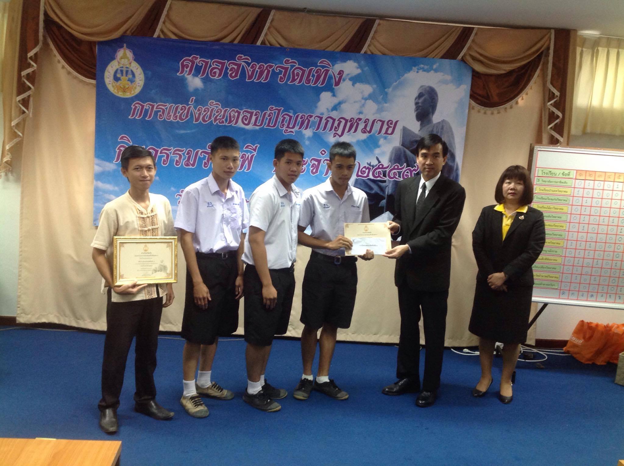 รางวัลรองชนะเลิศอันดับที่ 1 การแข่งขันตอบปัญหากฎหมาย เนื่องในกิจกรรมวันรพี ประจำปี 2559 ณ ศาลจังหวัดเทิง